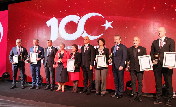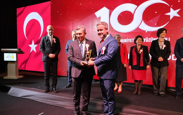 Antalya Ticaret ve Sanayi Odası’nın, Cumhuriyetimizin 100. Yılı etkinlikleri çerçevesinde gerçekleştirdiği ATSO Cumhuriyetin 100. Yıl Ödül Töreni’nde derneğimiz “Kente Değer Katanlar” kategorisinde ödül kazandı.ATSO’nun çeyrek asrı aşan bir geleneği haline gelen ödül töreninde Yönetim Kurulu Başkanımız Bilal Köleoğlu ödülü Antalya Valisi Hulusi Şahin ile ATSO Başkanı Ali Bahar’ın elinden aldı.6 şubatta yaşanılan depremin ardından düzenlenen yardım kampanyasıyla bu ödüle layık olan tüm üyelerimize teşekkür ediyoruz.